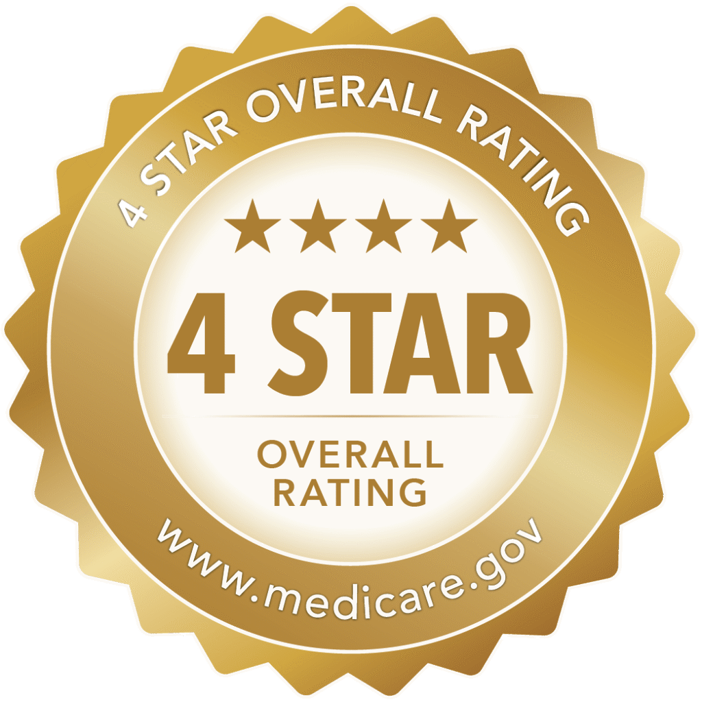 We are proud to announce that we’ve been recognized by the Centers for Medicaid and Medicare Services (CMS) as a Four-Star Overall and Five-Star Quality Measures facility. Nursing homes are rated from 1-5 stars based on health inspections, staffing, and quality measures.